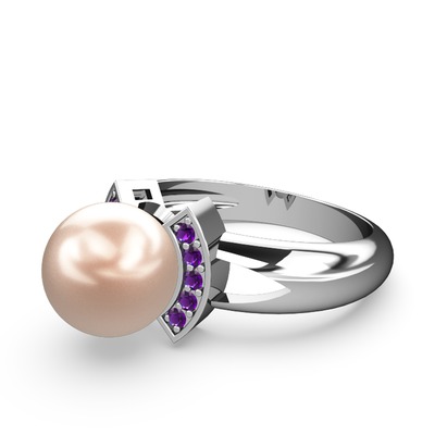 Pembe inci ve ametist 18 ayar beyaz altın yüzük