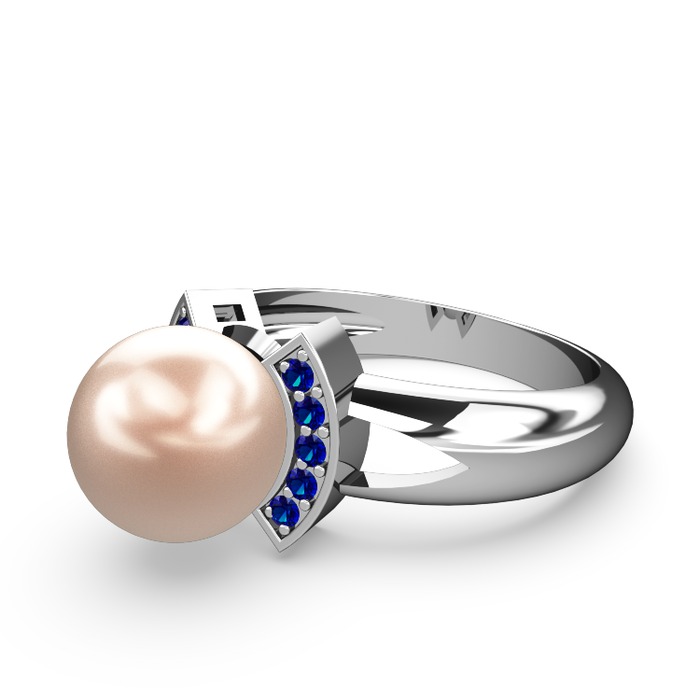 Pembe inci ve lab safir 18 ayar beyaz altın yüzük