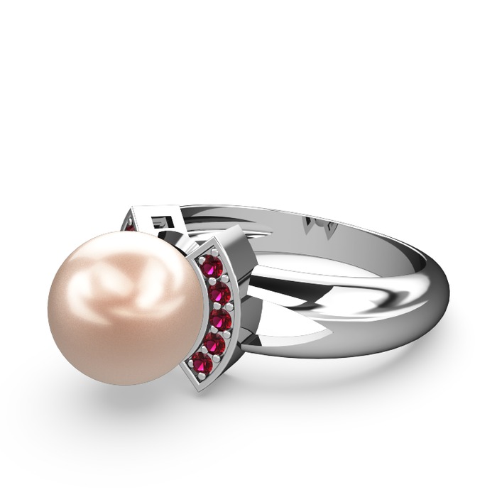 Pembe inci ve rodolit garnet 18 ayar beyaz altın yüzük