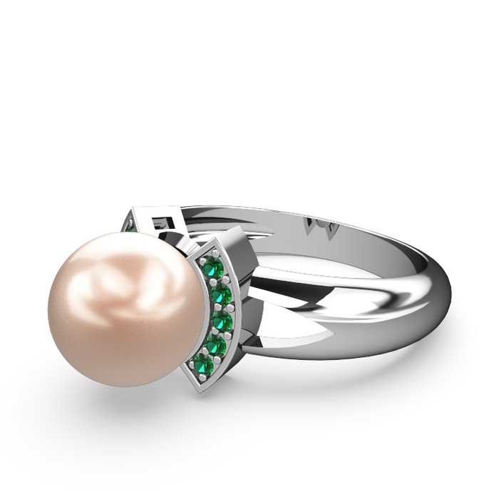 Pembe inci ve yeşil kuvars 8 ayar beyaz altın yüzük