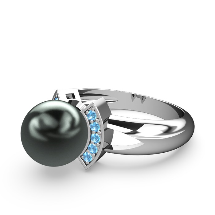 Siyah inci ve akuamarin 8 ayar beyaz altın yüzük