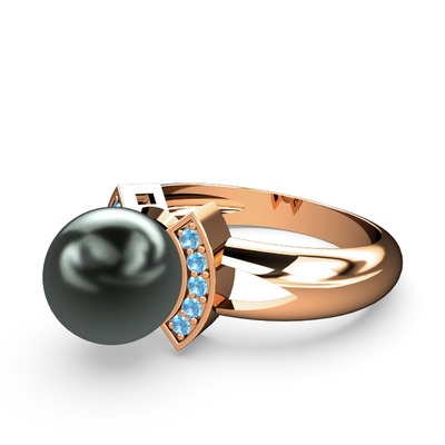 Siyah inci ve akuamarin 925 ayar rose altın kaplama gümüş yüzük