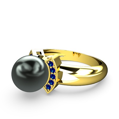 Siyah inci ve lab safir 14 ayar altın yüzük
