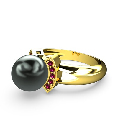 Siyah inci ve rodolit garnet 8 ayar altın yüzük