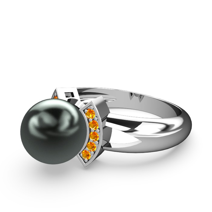 Siyah inci ve sitrin 18 ayar beyaz altın yüzük