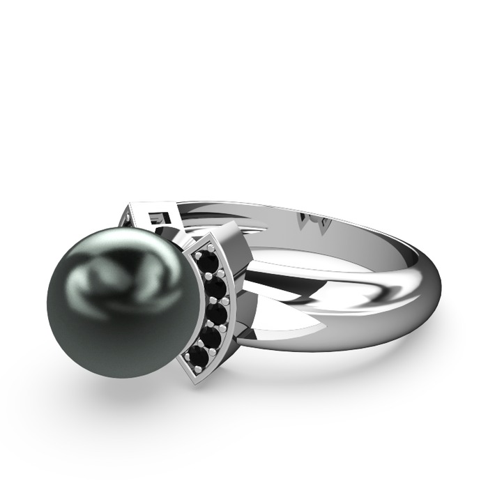 Siyah inci ve siyah zirkon 14 ayar beyaz altın yüzük