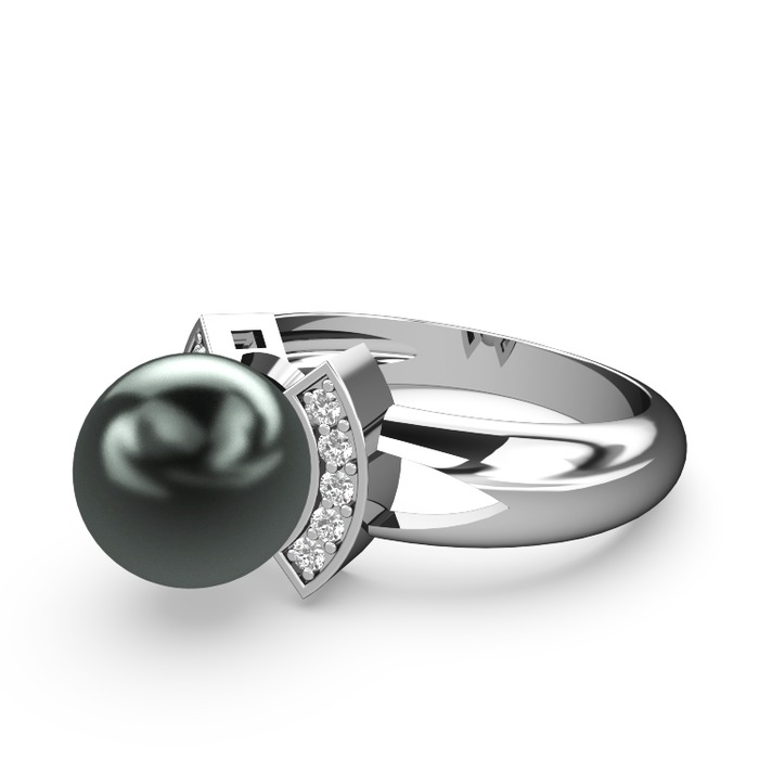 Siyah inci ve swarovski 8 ayar beyaz altın yüzük
