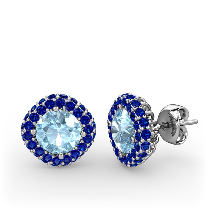 Akuamarin ve lab safir 14 ayar beyaz altın küpe