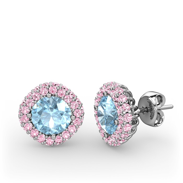 Akuamarin ve pembe kuvars 925 ayar gümüş küpe