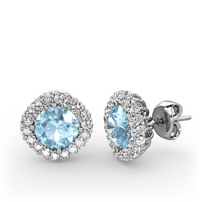 Akuamarin ve pırlanta 14 ayar beyaz altın küpe (1.52 karat)