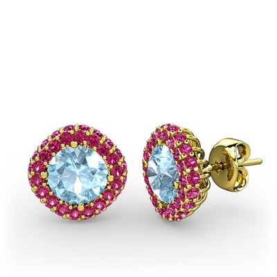 Akuamarin ve rodolit garnet 18 ayar altın küpe