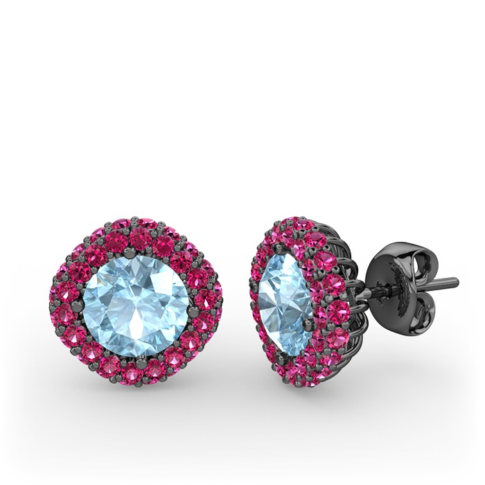 Akuamarin ve rodolit garnet 925 ayar siyah rodyum kaplama gümüş küpe