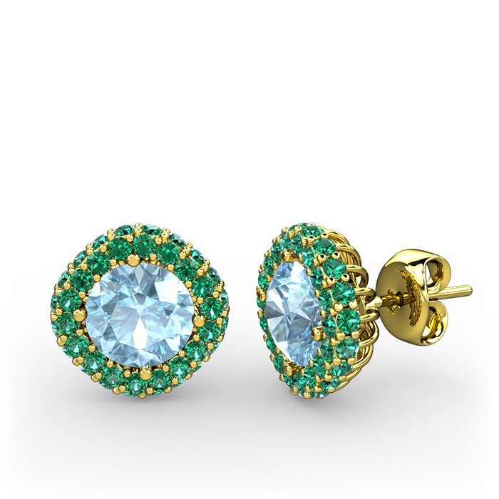 Akuamarin ve yeşil kuvars 18 ayar altın küpe
