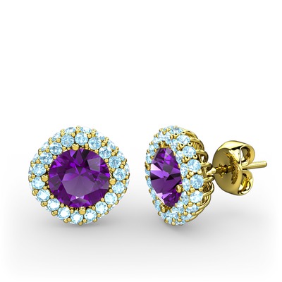 Ametist ve akuamarin 8 ayar altın küpe