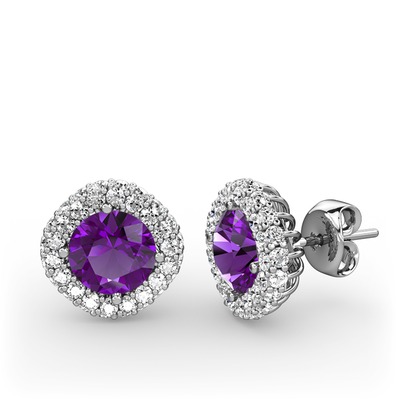 Ametist ve beyaz zirkon 925 ayar gümüş küpe