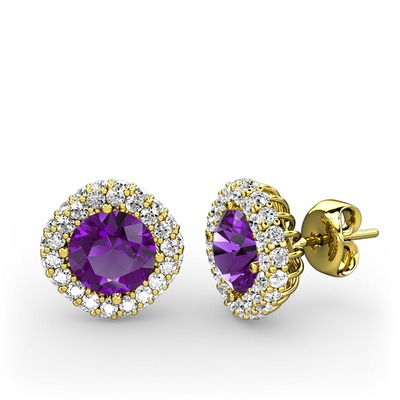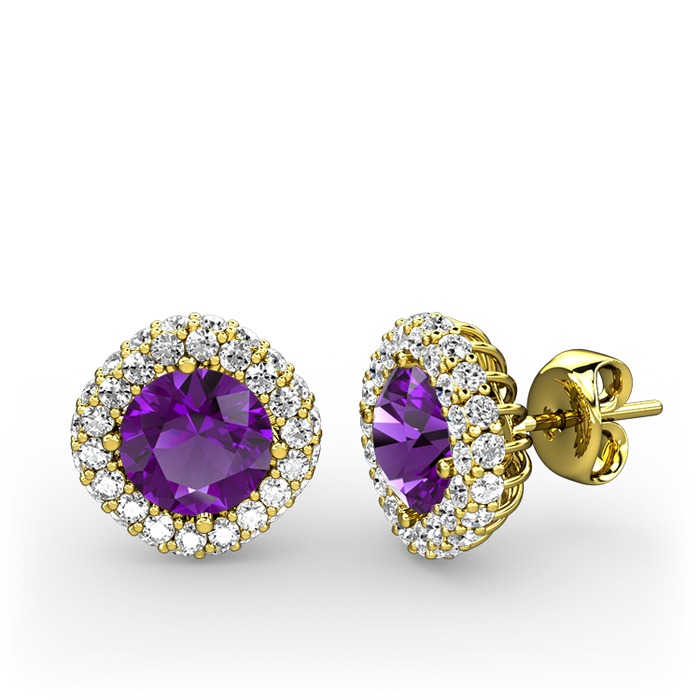 Ametist ve pırlanta 18 ayar altın küpe (1.52 karat)