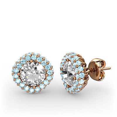 Beyaz zirkon ve akuamarin 18 ayar rose altın küpe