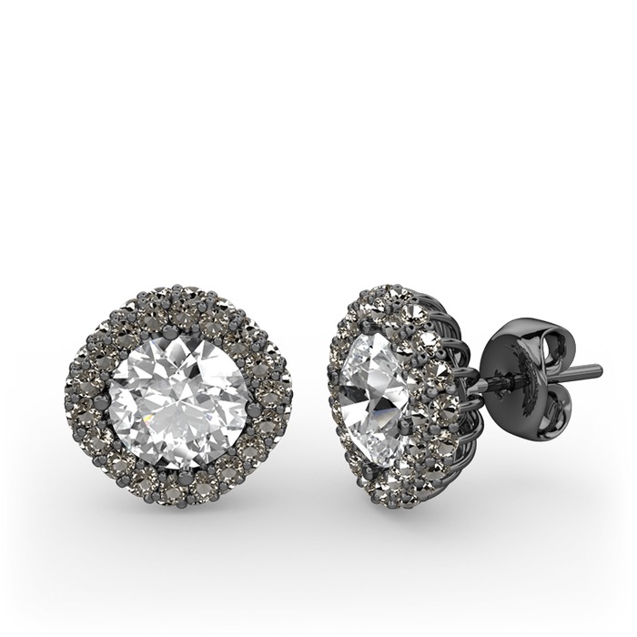 Beyaz zirkon ve dumanlı kuvars 925 ayar siyah rodyum kaplama gümüş küpe