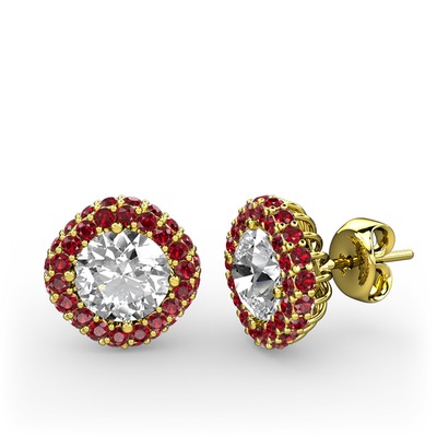 Beyaz zirkon ve garnet 14 ayar altın küpe
