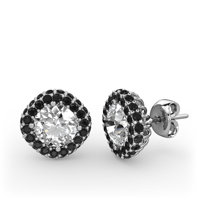 Beyaz zirkon ve siyah zirkon 8 ayar beyaz altın küpe