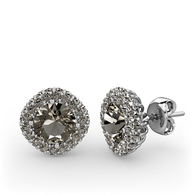 Dumanlı kuvars 14 ayar beyaz altın küpe
