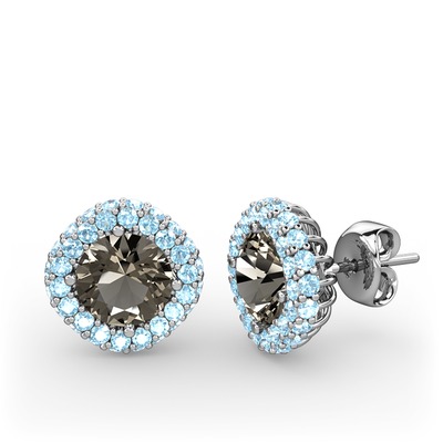 Dumanlı kuvars ve akuamarin 8 ayar beyaz altın küpe