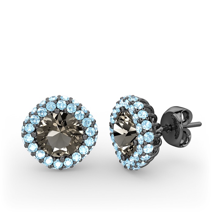 Dumanlı kuvars ve akuamarin 925 ayar siyah rodyum kaplama gümüş küpe