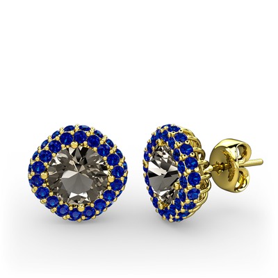 Dumanlı kuvars ve lab safir 925 ayar altın kaplama gümüş küpe
