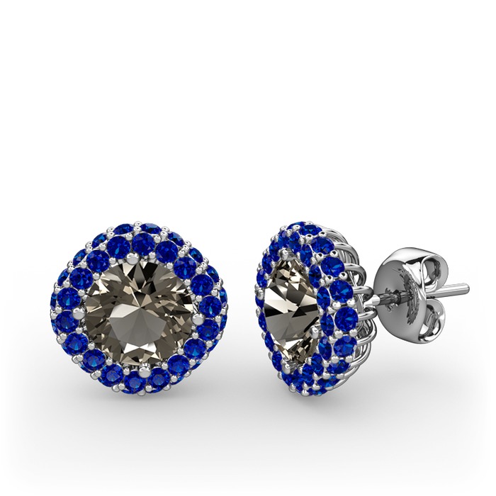 Dumanlı kuvars ve lab safir 925 ayar gümüş küpe