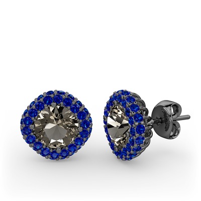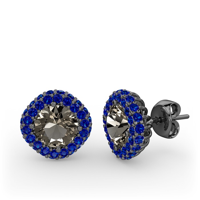 Dumanlı kuvars ve lab safir 925 ayar siyah rodyum kaplama gümüş küpe