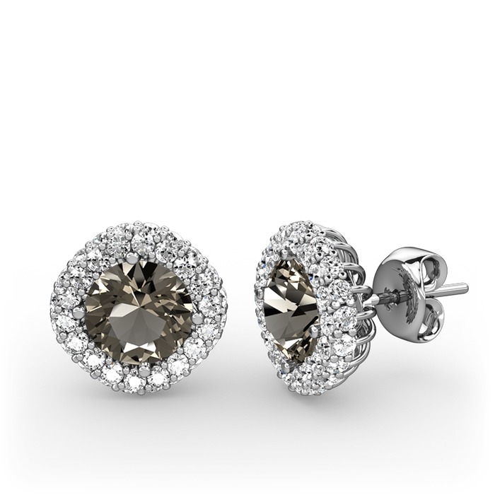 Dumanlı kuvars ve pırlanta 8 ayar beyaz altın küpe (1.52 karat)