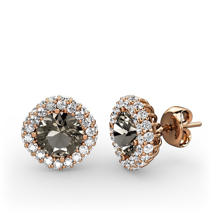 Dumanlı kuvars ve pırlanta 8 ayar rose altın küpe (1.52 karat)