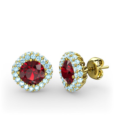 Garnet ve akuamarin 925 ayar altın kaplama gümüş küpe