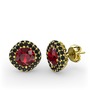 Garnet ve siyah zirkon 14 ayar altın küpe