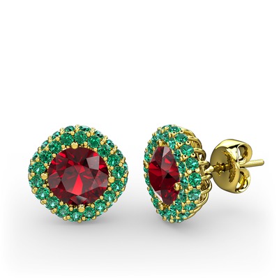 Garnet ve yeşil kuvars 14 ayar altın küpe