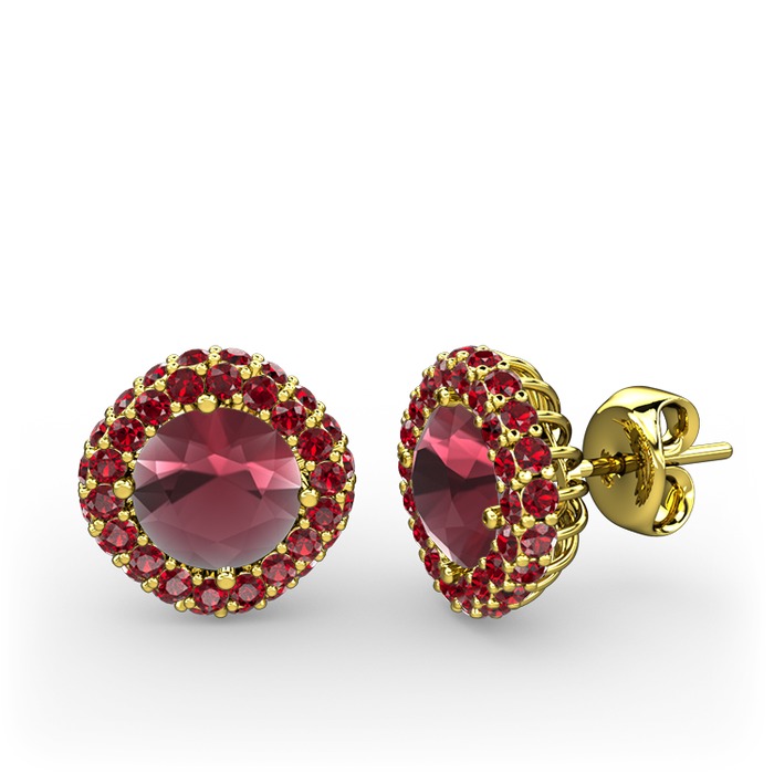 Kök yakut ve garnet 925 ayar altın kaplama gümüş küpe
