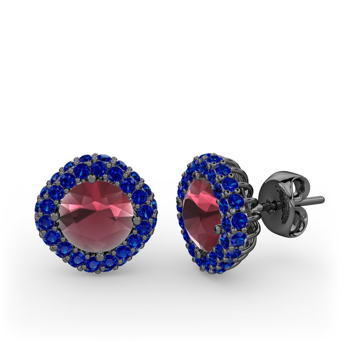 Kök yakut ve lab safir 925 ayar siyah rodyum kaplama gümüş küpe