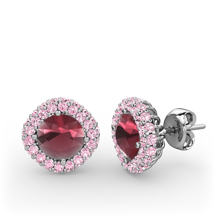 Kök yakut ve pembe kuvars 18 ayar beyaz altın küpe
