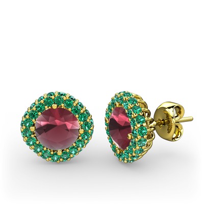 Kök yakut ve yeşil kuvars 8 ayar altın küpe