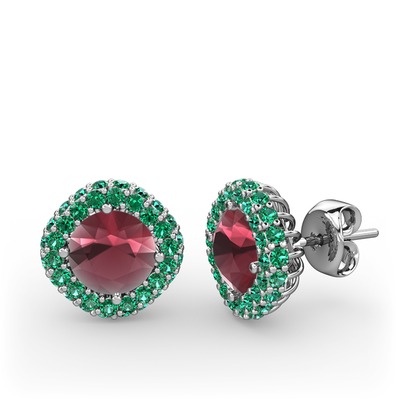 Kök yakut ve yeşil kuvars 925 ayar gümüş küpe