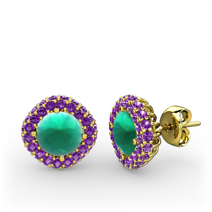 Kök zümrüt ve ametist 18 ayar altın küpe
