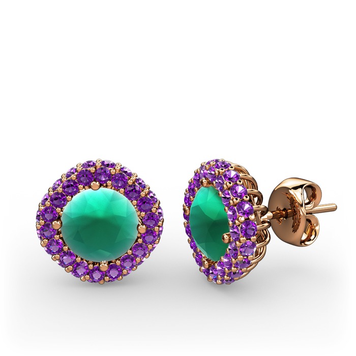 Kök zümrüt ve ametist 925 ayar rose altın kaplama gümüş küpe