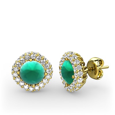 Kök zümrüt ve beyaz zirkon 18 ayar altın küpe