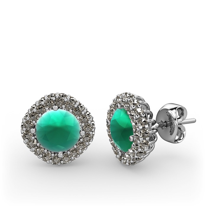 Kök zümrüt ve dumanlı kuvars 14 ayar beyaz altın küpe