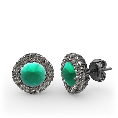 Kök zümrüt ve dumanlı kuvars 925 ayar siyah rodyum kaplama gümüş küpe