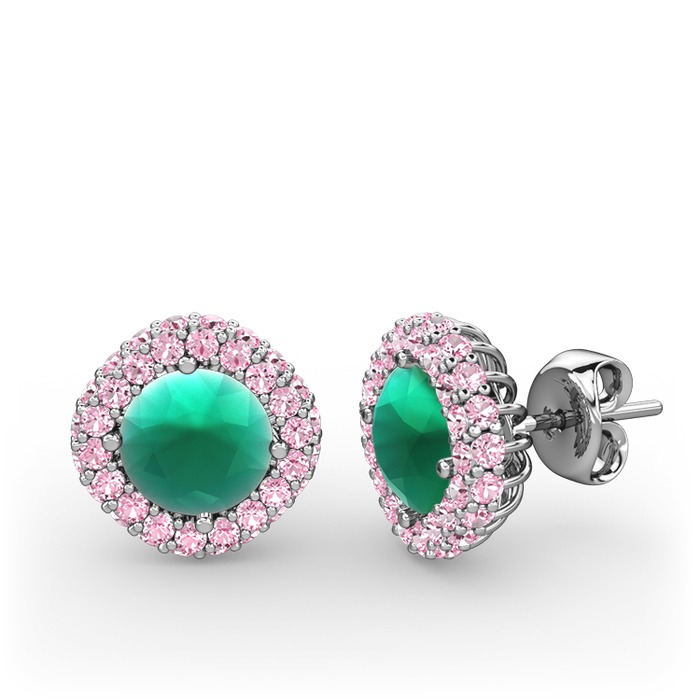 Kök zümrüt ve pembe kuvars 925 ayar gümüş küpe