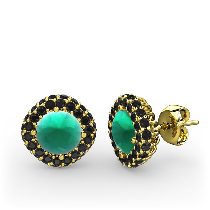 Kök zümrüt ve siyah zirkon 18 ayar altın küpe