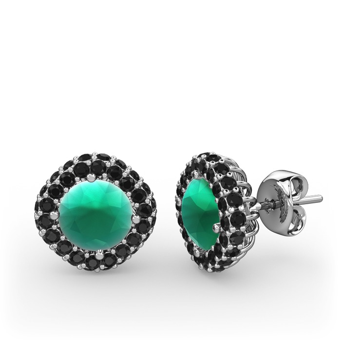 Kök zümrüt ve siyah zirkon 18 ayar beyaz altın küpe