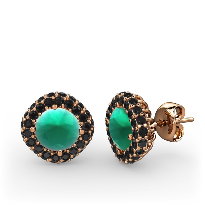 Kök zümrüt ve siyah zirkon 925 ayar rose altın kaplama gümüş küpe
