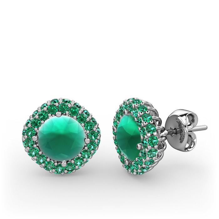 Kök zümrüt ve yeşil kuvars 14 ayar beyaz altın küpe